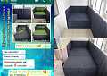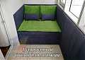 По периметру лоджии установлены мягкие стеновые панели по индивидуальным размерам, а в отведённое место встроен раскладной диван с мягкими подушками и декоративным покрывалом, отшитыми в двух цветах. Обивка выбрана заказчиком на свой вкус - и им оказался серый микровелюр в сочетании с ярким зелёным цветом сочной травы. Цитирую: "весна навеяла".