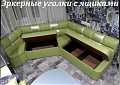 Затем обсуждаем размеры будущего уголка - какая Вам нужна глубина, длины сторон, высота спинки ... Разнообразен и дизайн изготавливаемых диванов - определяемся, что лучше подойдет по стилю именно Вам. Выбираем обивки - это шениллы, флоки, дышащая экологичная искусственная кожа разнообразных фактур и цветов. Эркерные кухонные уголки и диваны в эркер из мебельной ткани выглядят по-домашнему, отдают теплом и уютом, а экокожа облегчает уход за мебелью - поэтому каждый выбирает сам согласно своим предпочтениям.