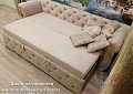 Здесь представлен индивидуально изготовленный нестандартный диван в гостиную серии Император на заказ с механизмом трансформации спального места "Дельфин". Классический диван для гостиной по размерам заказчика создает гармоничное пространство в интерьере дома. Изысканный мягкий обивочный материал флок, выбранный заказчиком, дополняют бежево-золотистый декоративный кант и кисти, а также мягкие декоративные подушечки, тем самым создают эффектный внешний вид и подчеркивают классический стиль дивана.