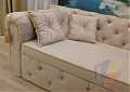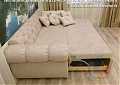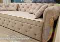 Здесь представлен индивидуально изготовленный нестандартный проект дивана серии Император для гостиной на заказ с механизмом трансформации спального места "Дельфин". Диван в гостиную по индивидуальным размерам заказчика создает гармоничное пространство в интерьере дома. Изысканный мягкий обивочный материал флок, выбранный заказчиком, дополняют бежево-золотистый декоративный кант и кисти, а также мягкие декоративные подушечки, тем самым создают эффектный внешний вид и подчеркивают классический стиль дивана.