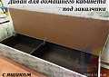Здесь представлени диван для домашнего кабинета, изготовленный по размерам заказчика и оснащённый объёмным ящиком для хранения, с дополнительной боковой спинкой, декоративными подушками и мягким матрасиком. Также возможно производство диванов на заказ со спальным местом.