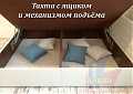 Здесь представлена нестандартная кровать для подростка от фабрики Алина Мебель. Изготовлена кровать тахта по индивидуальным размерам с матрасом из пенополиуретана, встроенным в спальное место. Выполнена тахта с мягкими боковыми декоративными спинками на заказ с прострочкой полосами и оснащёна объёмным ящиком для белья c ребром жёсткости с механизмом подъёма. Конструкция тахты прочна и надёжна - каркас спального места изготовлен из дерева и прочной фанеры.