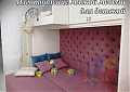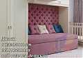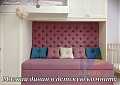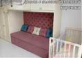 Очередная работа специалистов фабрики Алина Мебель - раскладной диван-кровать для детской комнаты очаровательных малышек. Это диван по типу кровать с высоким декоративным изголовьем каретная стяжка. Изготовлен встроенный диван со спальным местом по размерам заказчика в обивке микрошенилл нежного цвета с яркими подушечками в качестве стилистического акцента