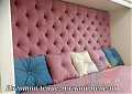 Кровать с высоким декоративным изголовьем каретная стяжка