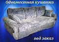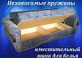 Диван кушетка был изготовлен под заказ для частного лица по примеру дизайна дивана еврокнижки, представленного выше. Это односпальный диван с ортопедическими независимыми пружиннами, оснащённый разделённым ящиком для белья с подъёмным механизмом. Заказчик указал нужные ему размеры, выбрал понравившуюся обивочную ткань, а также декоративное оформление подушками, кистями и кантом.