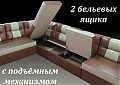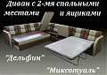 Производитель мягкой мебели фабрика Алина Мебель изготовит нестандартные диваны для кухни на заказ. Нестандартный угловой диван для кухни был изготовлен по индивидуальному проекту заказчика для его загородного дома. Мягкий уголок имеет два двухспальных места: одно - с механизмом Дельфин, другое - с механизмом трансформации Миксотуаль. Диван для кухни со спальным местом оснащен двумя ящиками для постельных принадлежностей.