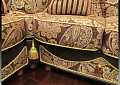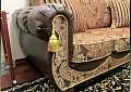 Мягкая мебель для гостиной является необходимым элементом интерьера любого дома. Правильно и со вкусом оформленный эркер в гостиной становится истинным ее украшением. Диван для эркера в гостиную может выделяться из общей концепции комнаты, оставаясь ее частью, а может сливаться с нею в монолит. Эркерные диваны для гостиной на заказ позволяют сделать нестандартную комнату более комфортной и уютной, подчеркивают изысканный вкус ее хозяев. Здесь Вы видете угловой диван для гостиной с эркером, изготовленный с механизмом трансформации спального места "Спартак". Изысканное сочетание экологичной кожи "кобра" и шелкография выбранного заказчиком шенилла дополняют декоративный кант и кисти цвета "золото", а также мягкие декорированные подушки, тем самым подчеркивая восточный стиль данного дивана.