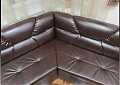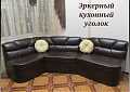 Здесь представлен нестандартный угловой диван для кухни с эркером, который был индивидуально изготовлен с учетом развернутого угла эркерного помещения и выступающего угла стены кухни. Таким образом, кухонный уголок для эркера на заказ гармонично вписался в нестандартное помещение кухни. В выборе обивки для своего дивана заказчик отдал предпочтение экологичной коже. Дизайн углового дивана был также разработан согласно пожеланиям заказчика.