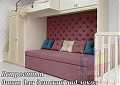 Очередная работа специалистов фабрики Алина Мебель - раскладной диван-кровать для детской на заказ для очаровательных малышек. Это диван по типу кровать с декоративным высоким изголовьем каретная стяжка. Изготовлен встроенная кровать со спальным местом по размерам заказчика в обивке микрошенилл нежного цвета с яркими подушечками в качестве стилистического акцента