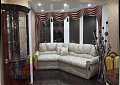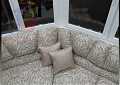 Здесь представлен нестандартный диван для гостиной с лоджией, объединенной с гостиной. Диван для лоджии с эркером на заказ по желанию заказчика был изготовлен максимально мягким и комфортным. Со вкусом подобранная изысканная шелковистая ткань хорошо сочетается с декоративным кантом и кистями на подлокотниках и царге дивана. Мягкие декоративные подушечки служат для дополнительного удобства. Эркерный диван, изготовленный по размерам нестандартного помещения, прекрасно вписался в классический интерьер гостиной и как нельзя лучше сочетается с остальной мебелью.