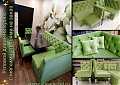 Из множества предложенных обивок предпочтение было отдано мягкому и легко очищаемому велюру цвета сочного зелёного яблока. Обеденная группа с диваном и деревянные стулья для столовой получилась яркой и комфортной на радость хозяйке