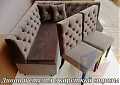 Мы рады, что претворили в жизнь все пожелания ещё одного нашего заказчика, а именно: нестандартные размеры, деревянные каркасы, каретная стяжка стразами, комфортное диванное исполнение, эргономичные спинки, мягкие и удобные сидения с эластичным внутренним наполнителем, объёмные ящики под сидениями, мягкая на ощупь велюровая обивка, выбранная заказчиком под стиль своей кухни и декоративные подушечки в подарок
