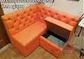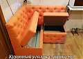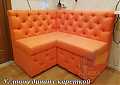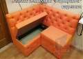Вот такой яркий, я бы сказала огненный уголок кухонный с кареткой на заказ для небольшой кухни был изготовлен в индивидуальном порядке и под заказ в комплектации с ящиками для хранения. Диван получился комфортным и функциональным на радость хозяйке. Спинку и царги углового дивана для кухни украшает каретная стяжка пуговицами.