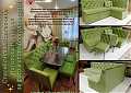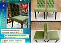 Из множества предложенных обивок предпочтение было отдано мягкому и легко очищаемому велюру цвета сочного зелёного яблока. Обеденная группа для столовой по индивидуальным размерам получилась яркой и комфортной на радость хозяйке