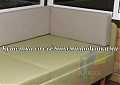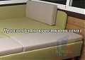 Кушетка раздвижная со спальным местом, прочная и надёжная поскольку её каркас выполнен деревянным полностью. Диванные подушки сидения пошив на заказ и такие же подушки к спинке - из эластичного пенополиуретана со съёмными чехлами. В качестве обивки заказчик выбрал мягкие шениллы пастельных тонов под стиль своего помещения.