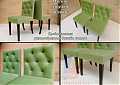 Специалисты фабрики Алина Мебель изготовили кухонный угловой диван по индивидуальным размерам и мягкие стулья с кареткой на деревянных ножках под заказ. Спинки дивана и стульев украшает каретная стяжка, под мягкими сидениями - объёмные ящики. Нестандартный кухонный диван каретная стяжка от фабрики Алина Мебель дополняют декоративные подушечки. Из множества предложенных обивок предпочтение было отдано мягкому и легко очищаемому велюру цвета сочного зелёного яблока. Обеденная группа для столовой - изготовление под заказчика - получилась яркой и комфортной на радость хозяйке