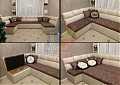 Производство П-образного дивана индивидуально на заказ - были подобраны износостойкие и легко очищаемые от загрязнений велюровые ткани цвета шампань в сочетании с микрофиброй коричневых тонов, сочетающихся с общим стилем кухни. Декоративные подушечки прекрасно дополняют диван и смотрятся очень даже мило - это был подарок заказчику согласно проводимой нами зимней Акции!