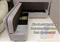 Изготовление мебели по индивидуальным размерам выполнено с тонкими спинками для экономии пространства. Дизайн спинок выбран прострочкой вертикальными полосами и по желанию клиента укомплектован ящиками для хранения под сидениями.